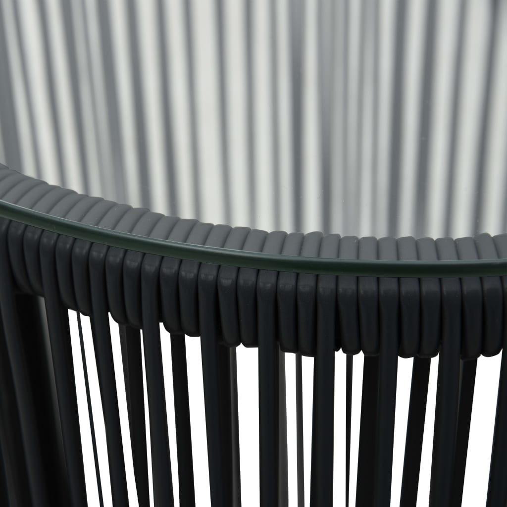 Gazdagítsa valami újjal és figyelemfelkeltővel kültéri életterét 3 részes bisztrószettünk segítségével. Tökéletes a barátokkal való pihenéshez egy frissítő ital és ízletes étel mellett. Ez a finom porszórt acélvázra szőtt PE-rattanból készült bisztró szett stabil és ellenáll a rossz időjárási körülményeknek és az UV-sugaraknak. Az asztallap átlátszó edzett üvegből készült, könnyen tisztítható. A kisasztal lehetővé teszi, hogy könnyen elérhető helyen tartsa az ételeket, könyveket, italokat. Ezenkívül a párnák extra kényelmet és támaszt nyújtanak a pihenés során. A szállítmány 2 széket és 1 kisasztalt tartalmaz.