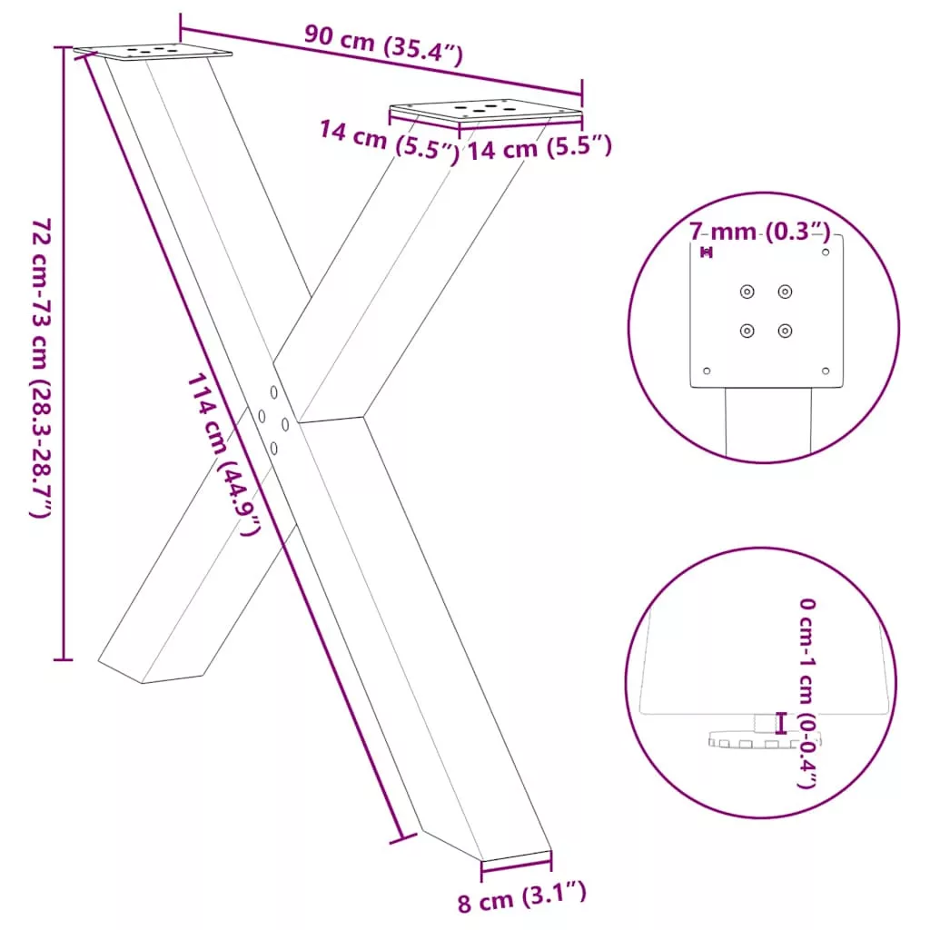 3 db X alakú étkezőasztal láb fekete 90 x (72-73) cm acél étkezőasztal láb