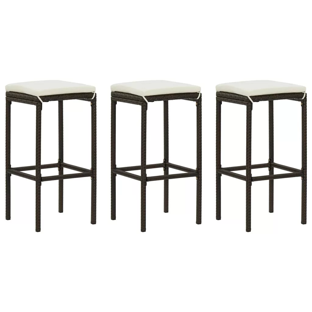 3 db barna polyrattan bárszék párnával