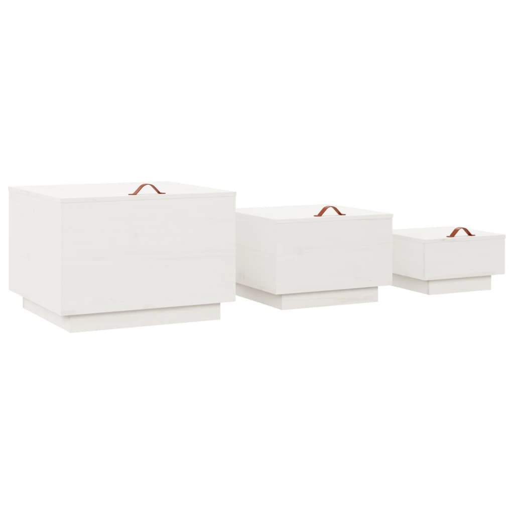 Tartsa szervezetten háztartási kellékeit, és teremtsen rendezett és tiszta környezetet szobájában ezekkel a fa tárolódobozokkal! Tömör fenyőfa: A tömör fenyőfa egy gyönyörű természetes anyag. A fenyőfa erezete egyenes, a csomók pedig jellegzetes, rusztikus megjelenést kölcsönöznek az anyagnak.Praktikus fedél: Minden tárolódoboz fedéllel lett ellátva, hogy elrejthesse szem elől és pormentesen tarthassa dolgait.Hasznos fogantyú: A tárolódoboz fogantyúval rendelkezik az Ön kényelme érdekében.Széleskörű alkalmazás: A tárolóláda dohányzóasztalként és kisasztalként is használható lakóterében. Megjegyzés:Az egyszerű összeszerelés érdekében minden termékhez mellékelünk összeszerelési útmutatót.