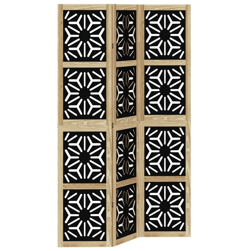 Vigyen eleganciát és szemet gyönyörködtető dekorációt a terébe ezzel a bájos térelválasztóval. Tartós és könnyen tisztítható: A térelválasztó szerelt fából készült, így könnyen tisztítható és tartós.Stabil váz: A tömör császárfa váz szilárdságot és stabilitást biztosít. A tömör császárfa egy gyönyörű természetes anyag. A császárfa rendkívül ellenálló a rovarokkal és a korhadással szemben.Rugalmas és könnyen összecsukható: Minden térelválasztó 3 fémpánttal, a felső és alsó panelek pedig rejtett, 2 az 1-ben zsanérokkal lettek összekötve. Így a térelválasztó panel a helytakarékosság érdekében könnyen összecsukható bizonyos mértékig, az Ön igényei szerint.Többcélú: A térelválasztó kiválóan alkalmas arra, hogy privát teret alakítson ki hálószobájában, nappalijában, irodájában, és más belső terekben. Az ablak elé is elhelyezheti, hogy megelőzze az intenzív napfény beáramlását.Mutatós megjelenés: Ez az összecsukható térelválasztó geometrikus kivágással karakteres megjelenést és díszítést kölcsönöz a térnek. Figyelem:Csak beltéri használatra.