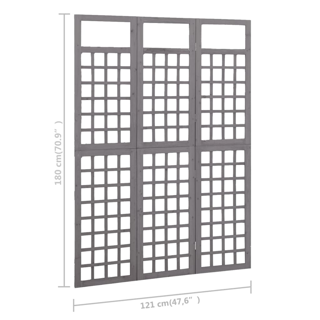 3 paneles szürke tömör fenyő térelválasztó/lugasrács 121x180 cm