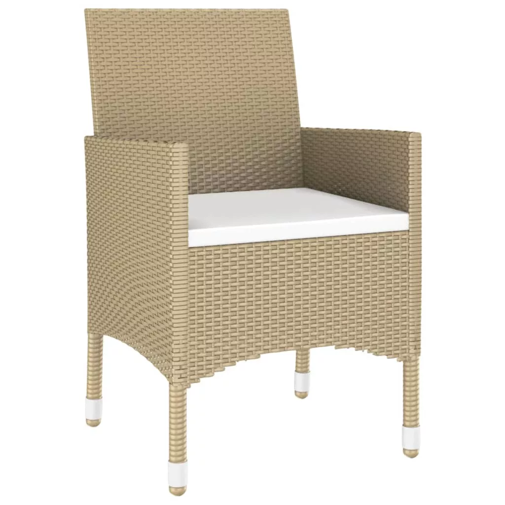 Ez az elegáns kerti étkezőgarnitúra kiváló választás az udvari vagy a kerti étkezéshez vagy pihenéshez. Erős váz: Az asztal és a székek UV-álló polyrattan bevonatú, porszórt acélvázzal rendelkeznek, így stabilak és tartósak.Kényelmes székek: A kerti székek ergonomikus formával rendelkeznek a maximális kényelem érdekében. A mellékelt párnák további támaszt nyújtanak.Praktikus asztal: Az asztallap edzett üvegből készült és erős a tartása, így könnyen tisztítható és karbantartható. Megjegyzés:Kerti bútora élettartamának meghosszabbítása érdekében javasoljuk, hogy védje vízálló takaróval. Maksimális 110 kg ülésenként. Legyen tudatában a nyílt tűz és más erős hőforrások kockázatának a termék környezetében.