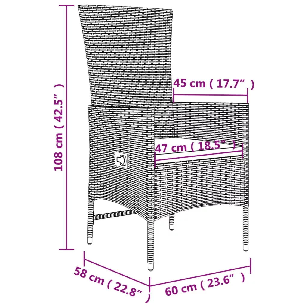 Ez az elegáns és modern kialakítású kerti társalgógarnitúra nagyszerű választás lesz a kertben való pihenéshez. Tartós anyag: A PE-rattan, más néven polyrattan, időjárásálló és könnyen tisztítható. Sokáig megőrzi szépségét a szabadban. Kiváló minőséget, kényelmet és esztétikus megjelenést garantál.Stabil váz: Az acél rendkívül kemény és erős anyag. Erőt és stabilitást biztosít.Dönthető funkció: A kerti székek dönthetők, így saját igénye szerint állíthatja be a háttámlát és a lábtartót.Kényelmes ülés: A vastag ülőpárnáknak köszönhetően a székek rendkívül kényelmesek.Praktikus asztallap: Az edzett üveg asztallap tökéletesen alkalmas különféle holmik elhelyezésére. Gyönyörű megjelenésű, és könnyen tisztítható. Megjegyzés:A kültéri bútor szépségének megőrzése érdekében javasoljuk, hogy vízálló huzattal fedje be. Jó tudni:A szerelés megkönnyítése érdekében minden termék kézikönyvvel együtt kerül kiszállításra.