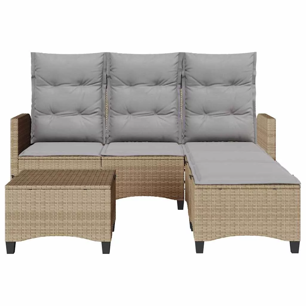 3 részes bézs polyrattan kerti ülőgarnitúra párnákkal L-alakú