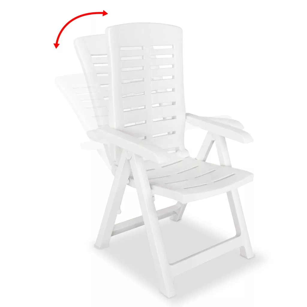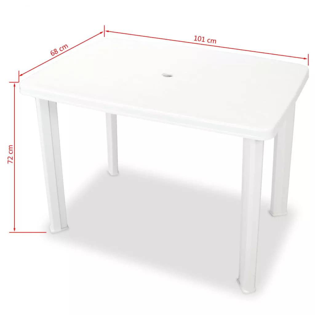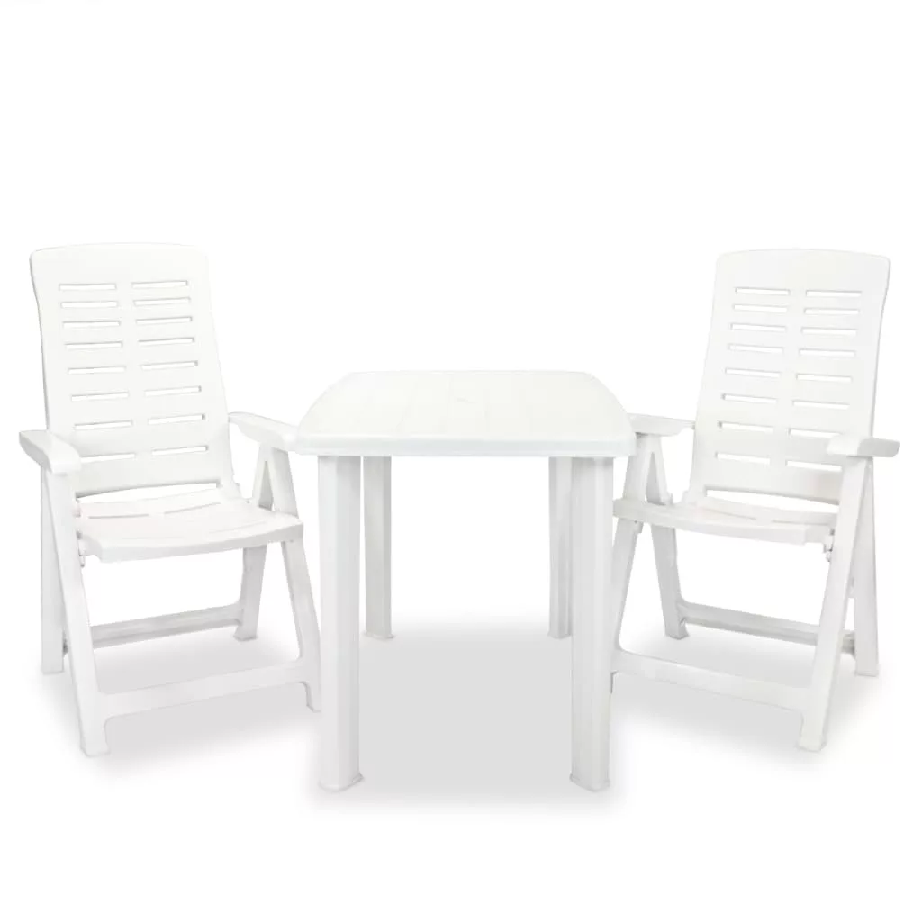 Ez az időjárás viszontagságainak ellenálló bisztró étkezőgarnitúra remek választás szabadtéri étkezéshez a kertben, a verandán vagy kempingezéshez. A kerti asztal egy napernyő behelyezésére alkalmas nyílással rendelkezik, hogy az árnyékban hűsölhessen. A székek háttámlái 4 különböző állásban rögzíthetőek, hogy mindig a legkényelmesebb pozícióban pihenhessen. A székek összecsukhatóak, amikor éppen nincs szükség rájuk. A garnitúra strapabíró műanyagból készült, melynek köszönhetően időjárásálló és könnyen tisztítható. A kültéri garnitúra ezenfelül könnyű is, ami elősegíti a mozgatását ás tárolását. A szállítmány 1 asztalt és 2 összecsukható széket tartalmaz. Maximum 110 kg ülésenként.