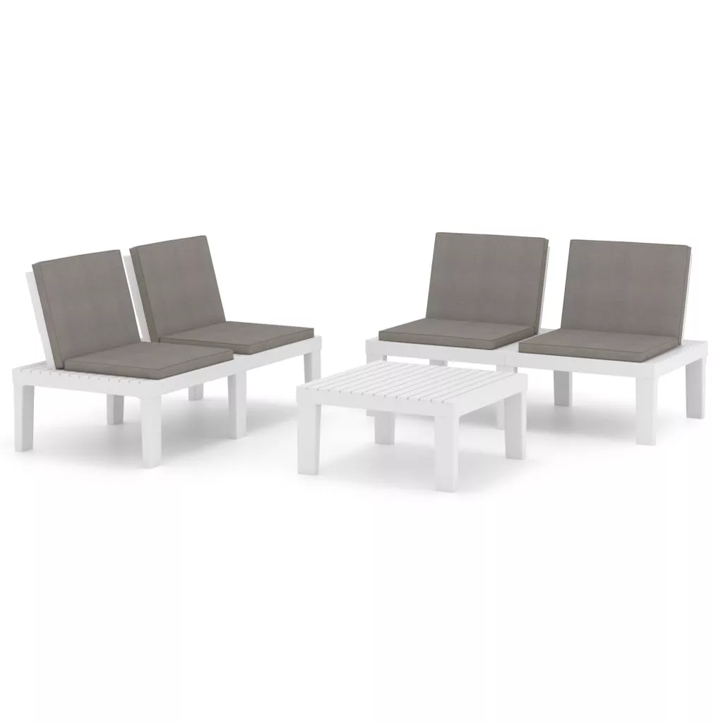 3 részes fehér műanyag kerti ülőgarnitúra párnákkal