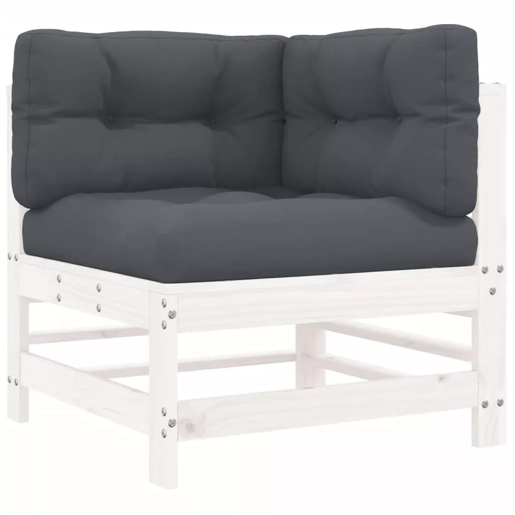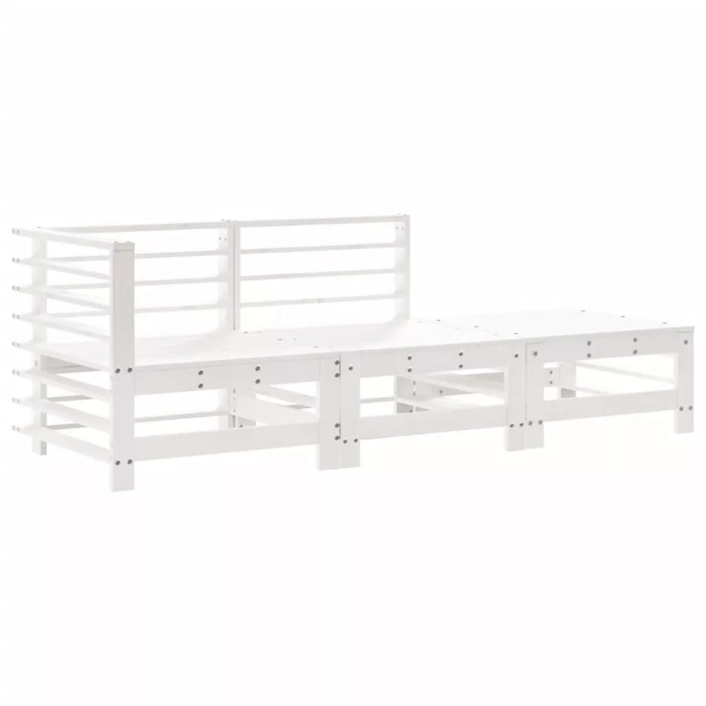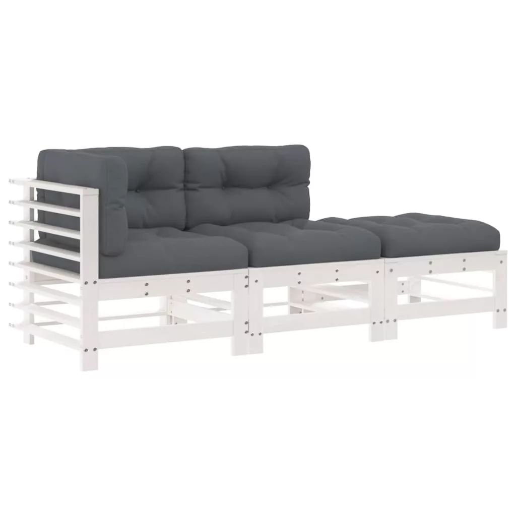 3 részes fehér tömör fa kerti társalgószett párnákkal