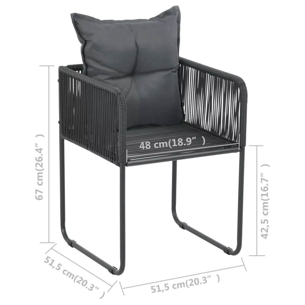 3 részes fekete és barna PVC rattan kerti étkezőgarnitúra