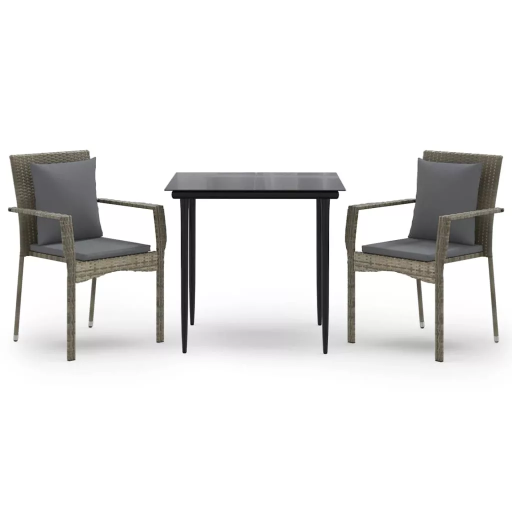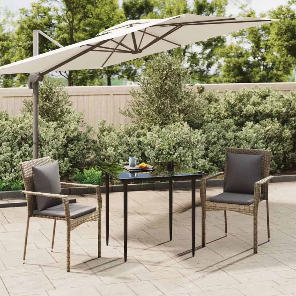 Ez a divatos kerti étkezőgarnitúra elegáns és modern megjelenésével nagyszerű választás a kertben való pihenéshez vagy szabadtéri étkezésekhez. Időjárásálló anyag: A PE-rattan, más néven polyrattan, időjárásálló és könnyen tisztítható. Sokáig megőrzi szépségét a szabadban. Kiváló minőséget, kényelmet és esztétikus megjelenést garantál.Robusztus váz: A porszórt acélváz masszívvá és stabillá teszi a kültéri étkezőgarnitúrát a mindennapos kültéri használathoz.Praktikus asztallap: A kerti asztal sima asztallapja edzett üvegből készült, amely nedves ruhával könnyen tisztítható. Ezenkívül a masszív asztallap tökéletes ételek, italok és egyéb dekorációs tárgyak elhelyezésére.Moduláris kialakítás: A terasz étkezőgarnitúra rugalmas és könnyen mozgatható, így a webáruház más moduláris elemeivel kombinálva saját, személyes kerti étkezőgarnitúra-konfigurációkat hozhat létre!Kényelmes ülésélmény: A háttámla extra kényelmet biztosít a kerti szék számára. Ráadásul a vastagon bélelt párnák is kényelmet nyújtanak ülés közben. Jó tudni:A szerelés megkönnyítése érdekében minden termék kézikönyvvel együtt kerül kiszállításra. Megjegyzés:A kültéri bútor szépségének megőrzése érdekében javasoljuk, hogy vízálló huzattal fedje be. Maximum 110 kg ülésenként.