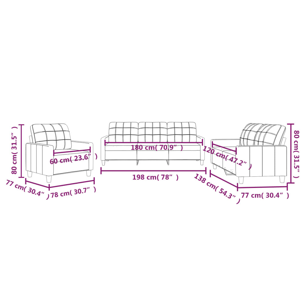 Ez az ülőgarnitúra kiváló hely a beszélgetéshez, olvasáshoz, tévézéshez vagy akár pihenéshez. Garantáltan otthona gyöngyszeme lesz. Tartós műbőr: A prémium minőségű műbőr rendkívül tartós anyag. Foltálló, így nedves ruhával könnyen tisztítható. A sima felület fényűző megjelenésű, és a valódi bőr szépségét biztosítja.Erős és stabil váz: A kanapé ülőfelületének furnérlemez és fém váza biztosítja a szilárdságot és a stabilitást.Kényelmes ülésélmény: A kanapé rendkívül kényelmes a vastagon párnázott üléseknek, karfáknak és hátpárnáknak köszönhetően.Szemet gyönyörködtető dizájn: Egyszerű, de modern dizájnjával ez a nappali ülőgarnitúra figyelemfelkeltő darab lesz a szobájában. Maksimális 110 kg ülésenként. Legyen tudatában a nyílt tűz és más erős hőforrások kockázatának a termék környezetében.