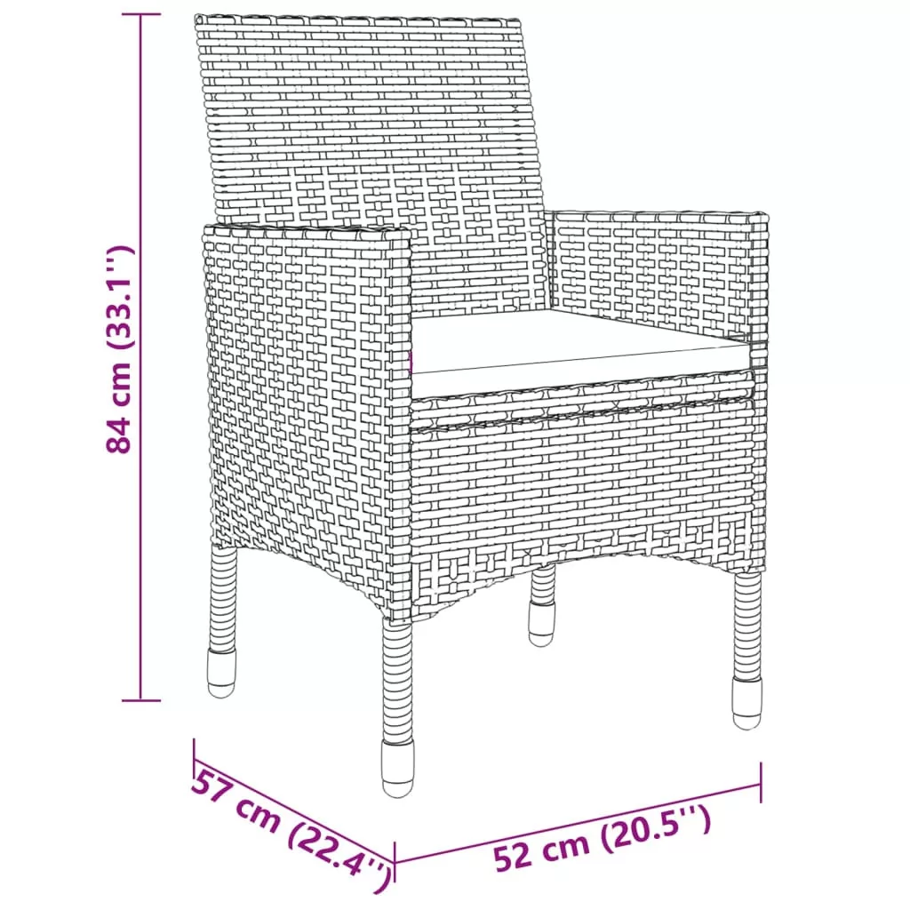 Ez az elegáns kerti étkezőgarnitúra kiváló választás az udvari vagy a kerti étkezéshez vagy pihenéshez. Erős váz: Az asztal és a székek UV-álló polyrattan bevonatú, porszórt acélvázzal rendelkeznek, így stabilak és tartósak.Kényelmes székek: A kerti székek ergonomikus formával rendelkeznek a maximális kényelem érdekében. A mellékelt párnák további támaszt nyújtanak.Praktikus asztal: Az asztallap edzett üvegből készült és erős a tartása, így könnyen tisztítható és karbantartható. Megjegyzés:Kerti bútora élettartamának meghosszabbítása érdekében javasoljuk, hogy védje vízálló takaróval. Maksimális 110 kg ülésenként. Legyen tudatában a nyílt tűz és más erős hőforrások kockázatának a termék környezetében.