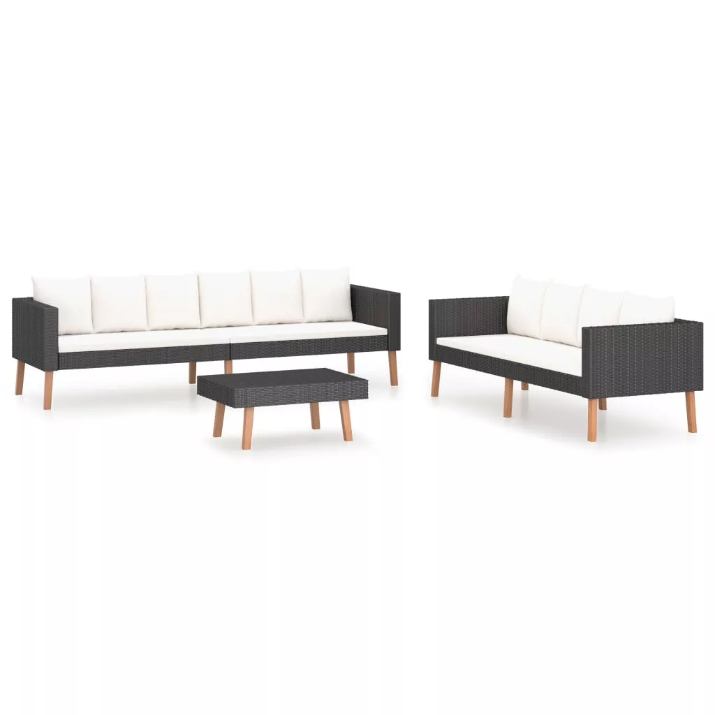 Élvezze a pihentető, napos délutánt vagy nyári estét családjával és barátaival a teraszon, a kertben vagy a teraszon ezen az ülőgarnitúrán! Ez a kerti társalgószett porszórt acélból készült, tartós polietilén rattan vázzal, így erős, masszív és könnyen tisztítható. A vastagon bélelt párnák és az extra mély, modern ülések tökéletes kényelmet biztosítanak. A dohányzóasztal ideális az ételek és italok kézközelben való tárolásához. Könnyű súlyának és elemes kialakításának köszönhetően könnyedén mozgathatja a garnitúrát a kertjében, hogy bármilyen alakba rendezhesse. Figyelem: javasoljuk, hogy a hosszú élettartam megőrzése érdekében a szettet eső, hó és fagy esetén takarja le.