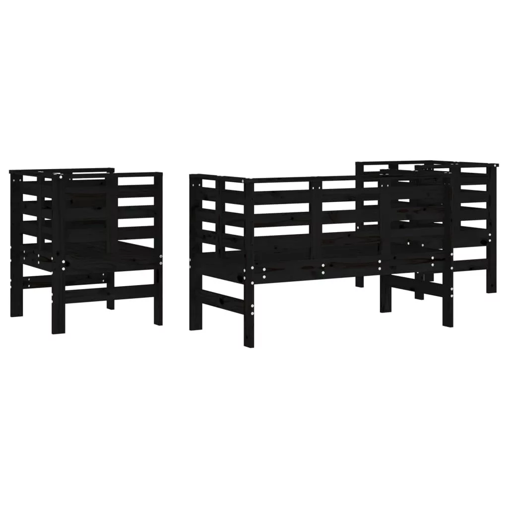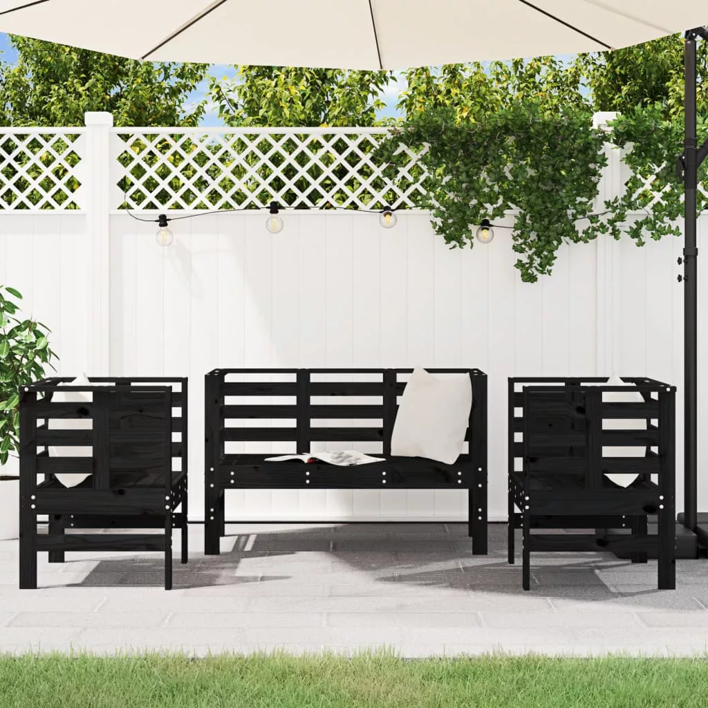 3 részes fekete tömör fenyőfa kerti pihenőgarnitúra