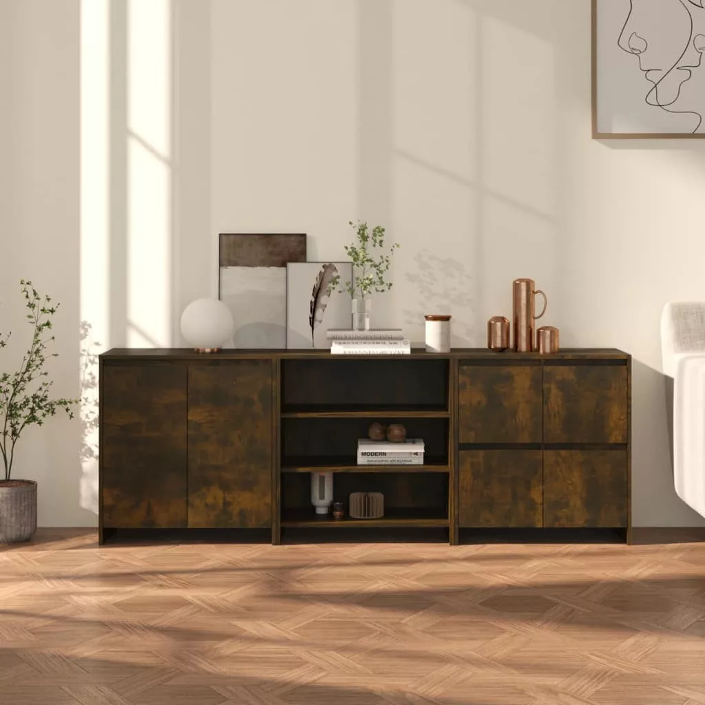 3 részes füstös tölgy színű szerelt fa tálalószekrény