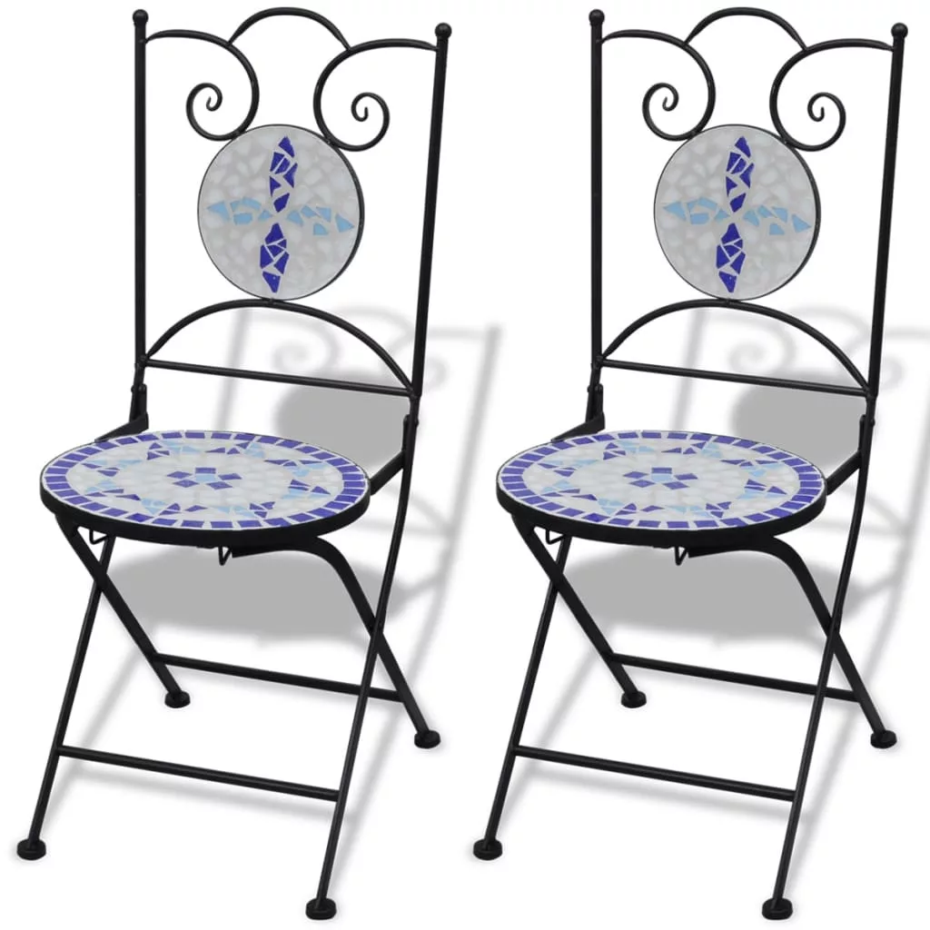3 részes kék és fehér mozaik bisztró szett