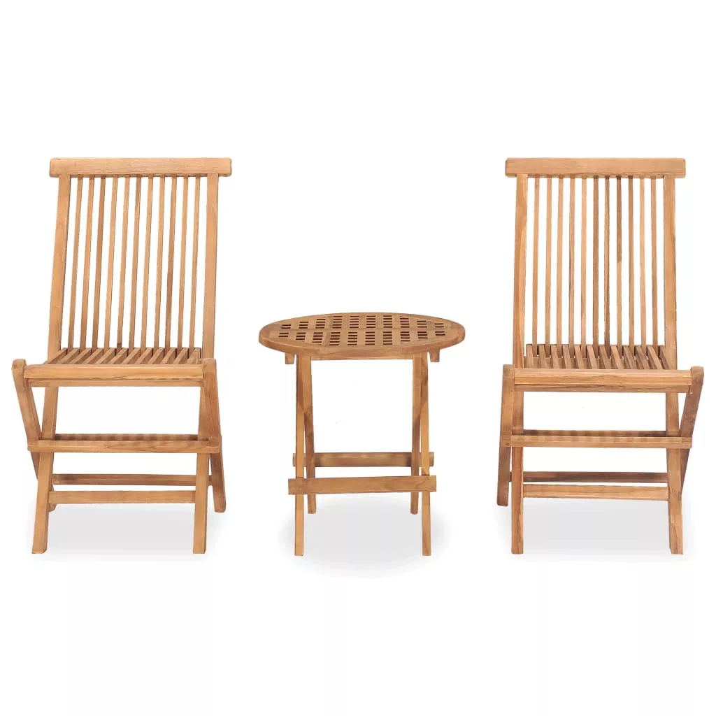 3 részes kültéri összecsukható tömör tíkfa étkezőgarnitúra