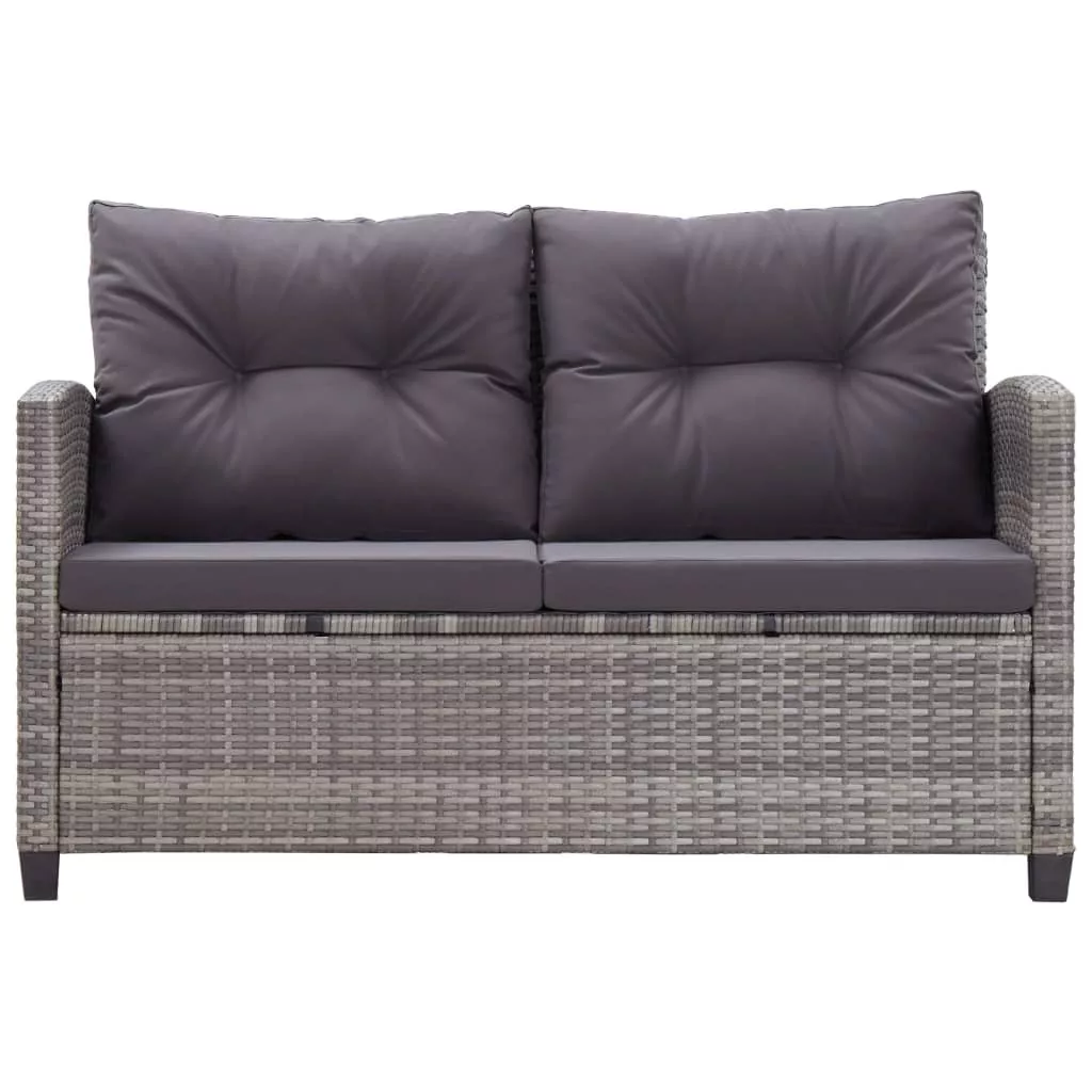 3 részes polyrattan kerti étkezőgarnitúra szürke párnákkal