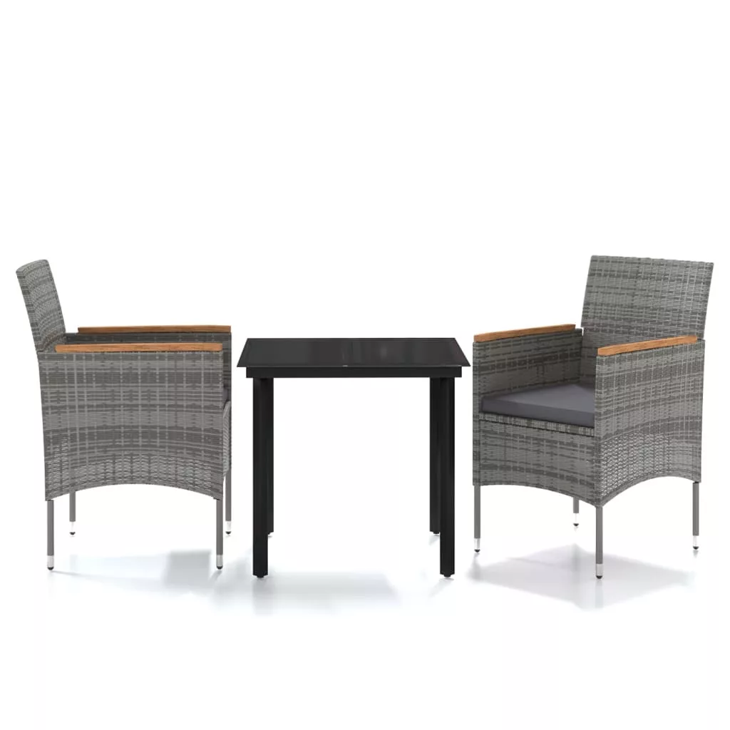 Nagyszerű választás szabadtéri étkezéshez vagy pihenéshez. Az asztal és a székek porszórt acélvázzal rendelkeznek, így erős szerkezetűek és stabilok, valamint alkalmasak mindennapos kültéri használatra. A vízálló PE-rattannak köszönhetően a székek könnyen tisztíthatók és strapabírók. Továbbá a sima üveg asztallap egy nedves ruhával könnyen tisztítható, és tökéletes ételek, italok és egyéb dísztárgyak elhelyezésére. Figyelem: Kültéri bútora élettartamának meghosszabbítása érdekében javasoljuk, hogy tisztítsa rendszeresen, és ne hagyja feleslegesen a szabadban, védelem nélkül.Tisztítás: Használjon enyhe szappanoldatot.Tárolás: Ha lehetséges, tárolja zárt, hűvös, száraz helyen. Ha a terméket a szabadban tárolja, védje vízálló burkolattal. Eső vagy havazás után törölje le és szárítsa fel a felesleges vizet vagy havat a sík felületekről. Hagyjon elegendő légkeringést a nedvességből eredő károk elkerülése érdekében.