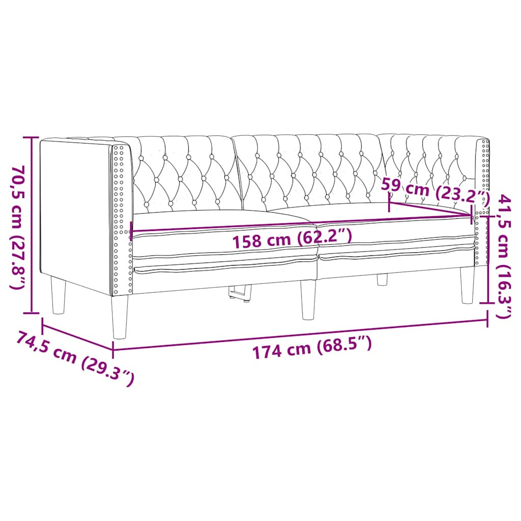 Ez a chesterfield kanapégarnitúra kiváló hely a beszélgetéshez, olvasáshoz, tévézéshez vagy akár pihenéshez. Célja, hogy otthona fókuszpontja legyen. Hosszú élettartam és egyszerű gondozás: A műbőr rendkívül tartós anyag, amely ellenáll a foltoknak, így könnyen tisztítható egy nedves ruhával. Sima felülete a valódi bőrre emlékeztető elegáns megjelenést biztosít.Kényelmes ülésélmény: A kanapé rendkívül kényelmes a vastagon párnázott üléseknek, karfáknak és hátpárnáknak köszönhetően.Chesterfield stílus: A klasszikus gombokkal tűzdelt háttámlával és karfákkal, valamint az egységes hát- és karmagassággal a kanapé minden helyiséget feldob, stílust és kényelmet biztosítva.Tömör lábak: A kárpitozott fotelt erős lábak tartják, amelyek stabilitást, biztonságot, és szilárdságot biztosítanak.