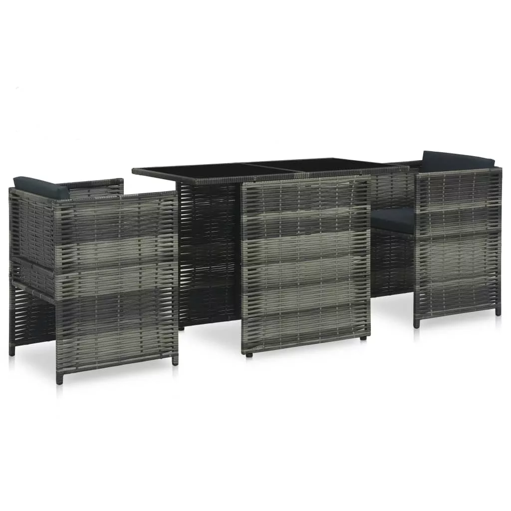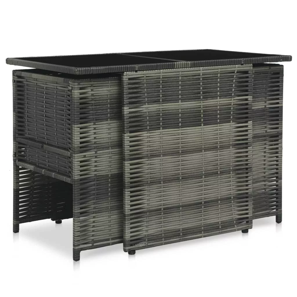 Ez a kerti rattan étkezőkészlet elegáns kialakítású, és kertje, verandája vagy terasza fénypontja lehet. Időjárásálló és vízálló PE-rattanból készült, asztallapja pedig üveg, így ez a szabadtéri étkező készlet könnyen tisztítható, strapabíró és mindennapi használatra alkalmas. A porszórással felületkezelt acél szerkezetüknek köszönhetően az asztal és a székek nagyon stabilak és tartósak. A könnyű súlyú tervezésnek köszönhetően mindegyik könnyen mozgatható. A székek jól tárolhatóak az asztal alatt, amikor nincsenek használatban. A vastag, levehető üléspárnák rendkívül kényelmesek. A cipzárral ellátott párnahuzatok könnyen eltávolíthatóak és moshatóak. Figyelem: Eső, hó vagy fagy esetén azt tanácsoljuk, hogy takarja le a garnitúrát.