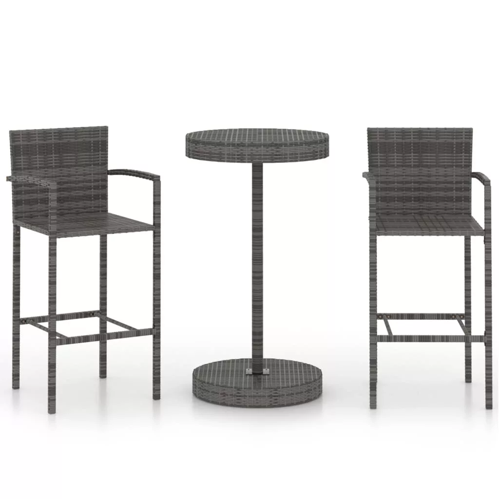 3 részes szürke polyrattan kerti bárszett