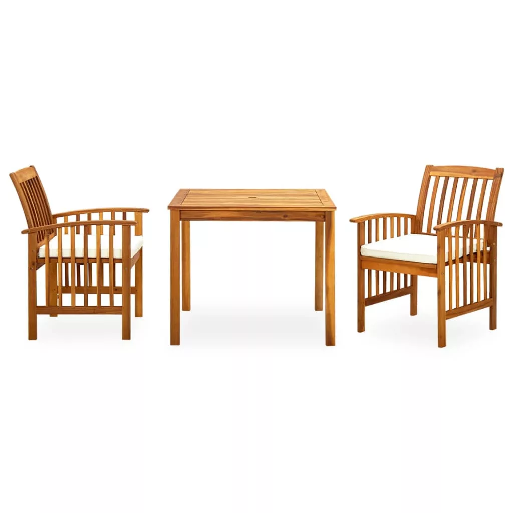 3 részes tömör akácfa kerti étkezőgarnitúra párnákkal
