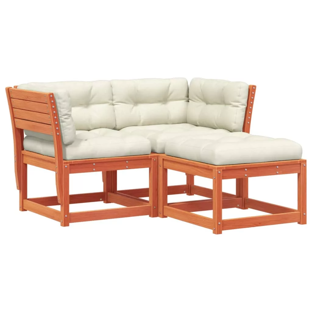 3 részes viaszbarna tömör fenyőfa kerti ülőgarnitúra párnákkal