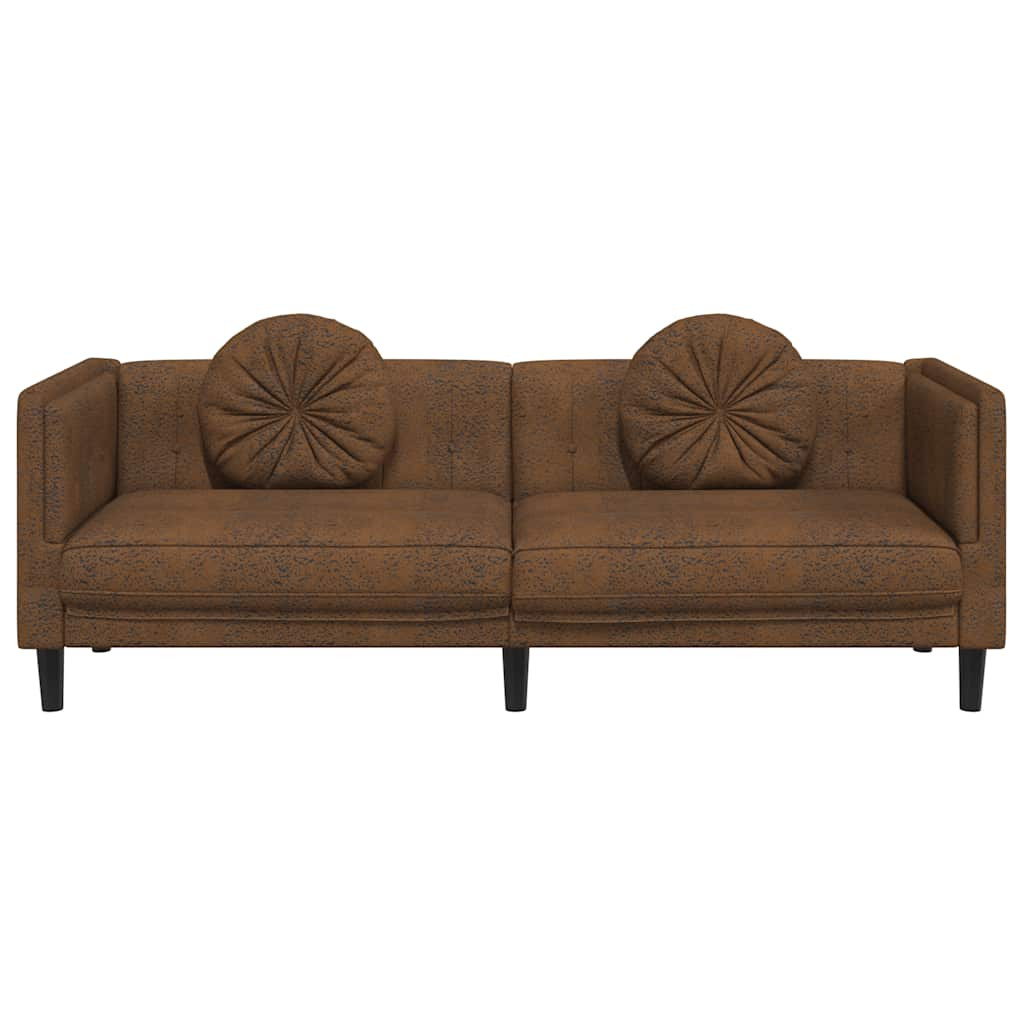 Ez a 3 személyes kanapé kiváló hely a beszélgetéshez, olvasáshoz, tévézéshez vagy akár pihenéshez. Célja, hogy otthona fókuszpontja lesz. Puha és tartós: A műbőr rendkívül finom szálakból áll, amelyeknek különleges foltálló képességgel rendelkeznek. Tartóssága és könnyű tisztíthatósága révén a művelúr kiváló választás bútorkárpitokhoz.Kényelmes ülőélmény: A kanapé rendkívül kényelmes a vastagon párnázott ülésével, a karfával, a háttámlával, és a kerek párnákkal.Tömör lábak: A kárpitozott fotelt erős lábak tartják, amelyek stabilitást, biztonságot, és szilárdságot biztosítanak.Szemet gyönyörködtető dizájn: Egyszerű, de modern dizájnjával ez a nappali ülőgarnitúra figyelemfelkeltő darab lesz a szobájában. Maximum 110 kg ülésenként. Ügyeljen a nyílt tűz és más erős hőforrások veszélyére a termék közelében.