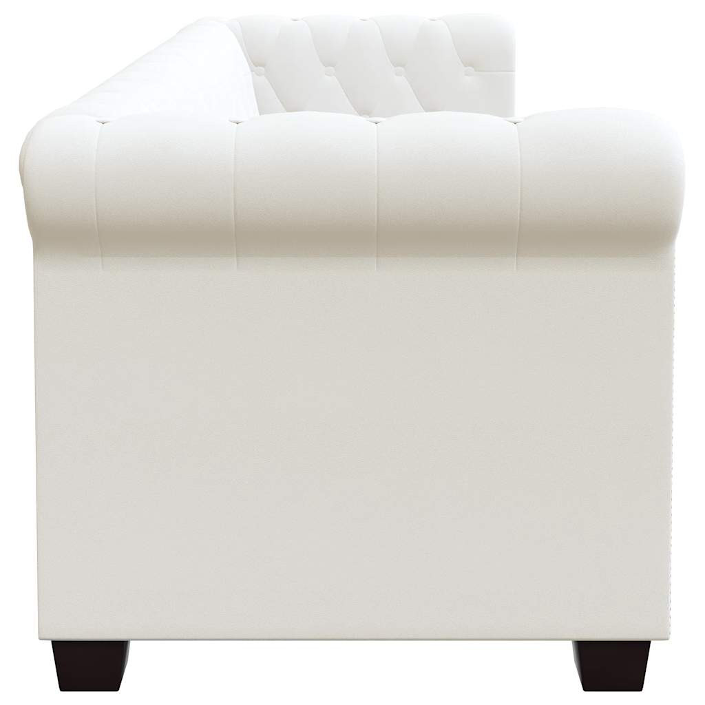 3 személyes fehér műbőr Chesterfield kanapé