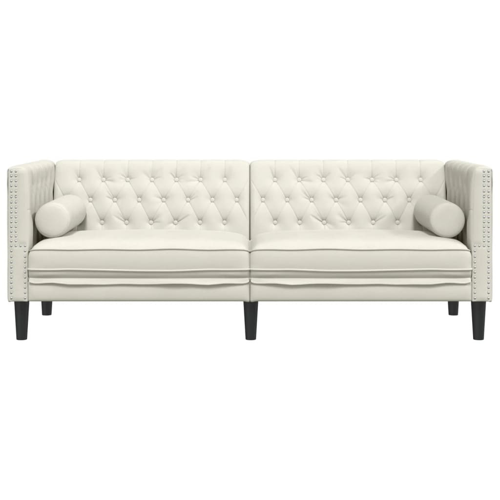 3 személyes krémszínű bársony Chesterfield kanapé párnákkal