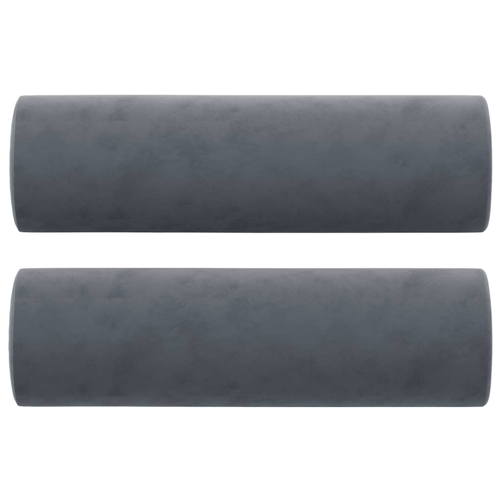 3 személyes sötétszürke bársony kanapé díszpárnákkal 180 cm