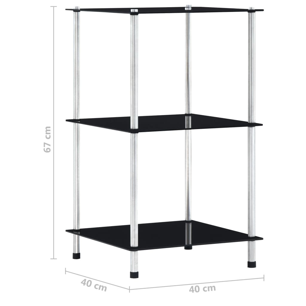 3 szintes fekete edzett üveg polc 40 x 40 x 67 cm