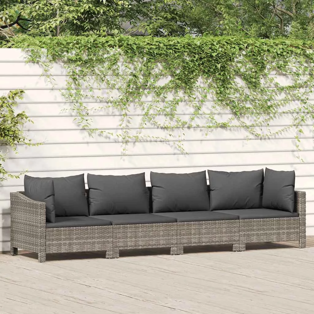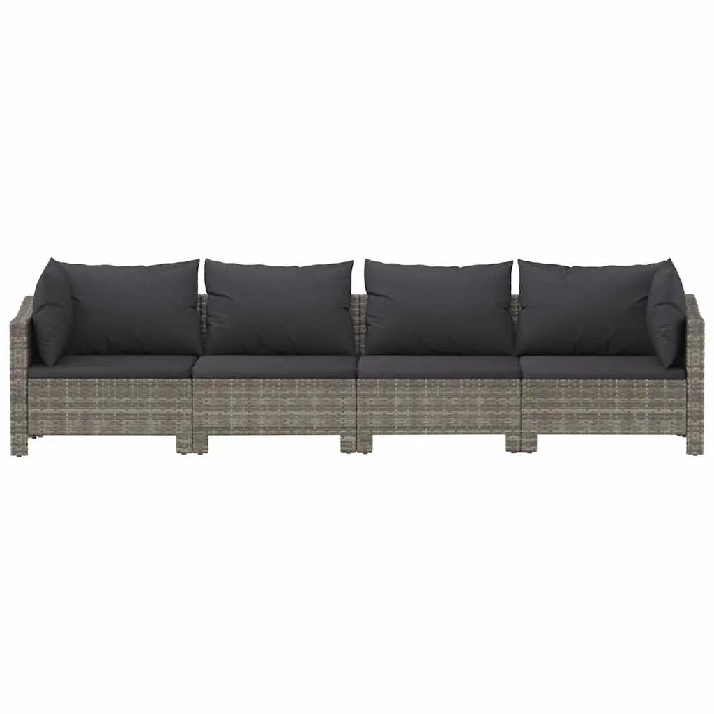 4 darabos szürke polyrattan kerti bútor szett párnákkal