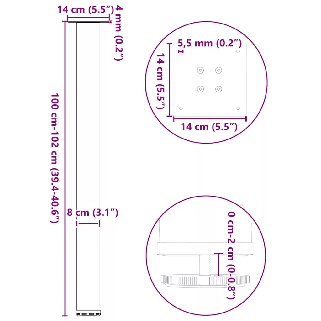 4 db antracitszürke acél bárasztalláb 100-102 cm