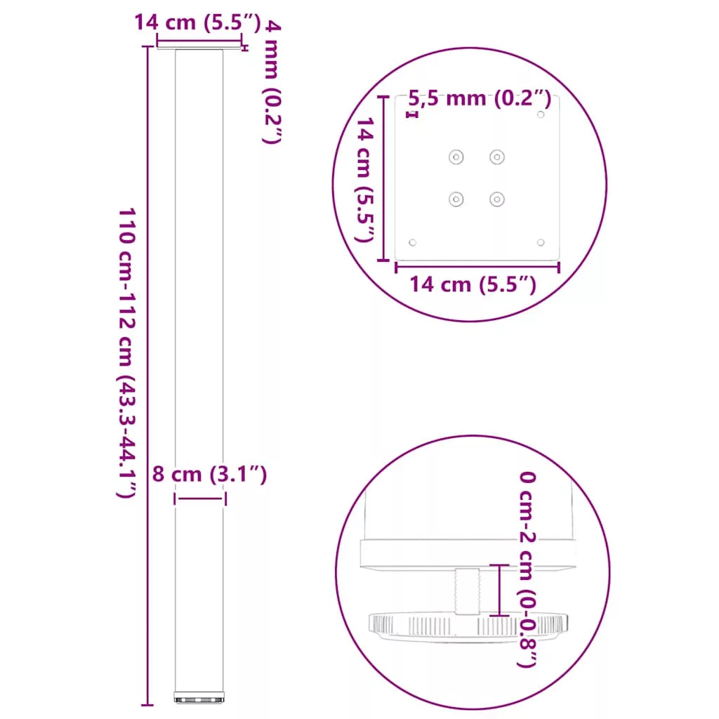 Ezek a bárasztal lábak ötvözik a formát és a funkciót. Ideális választás bárasztala személyre szabásához. Tartós anyag: Ez a bárasztal láb porszórt acélból készült, így masszív és tartós ahhoz, hogy elbírjon egy nehéz asztallapot.Praktikus kialakítás: Ez a bárasztal láb állítható lábszintezőkkel rendelkezik, amelyek biztosítják a stabilitást még egyenetlen padlón is, és minimalizálják a padló karcolódását. Ezenkívül a konzol előre fúrt lyukakkal és a szállítási terjedelemben mellékelt csavarokkal rendelkezik, amelyekkel a láb az asztallaphoz rögzíthető (nem tartozék), így könnyen összeszerelhető.Modern esztétika: A bárasztal lába letisztult és modern megjelenést kölcsönöz. Letisztult vonalai és geometrikus kialakítása fokozza a bútor összképét. Jó tudni:A szállítás csak az asztallábakat tartalmazza, az asztallap nem része a csomagnak.