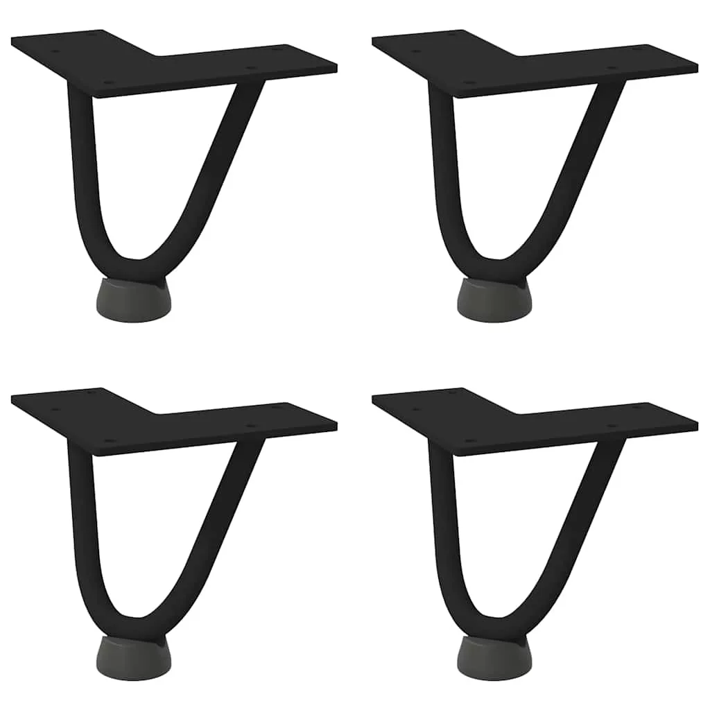 4 db fekete, tömör acél hajtűláb dohányzóasztalhoz, 10 cm