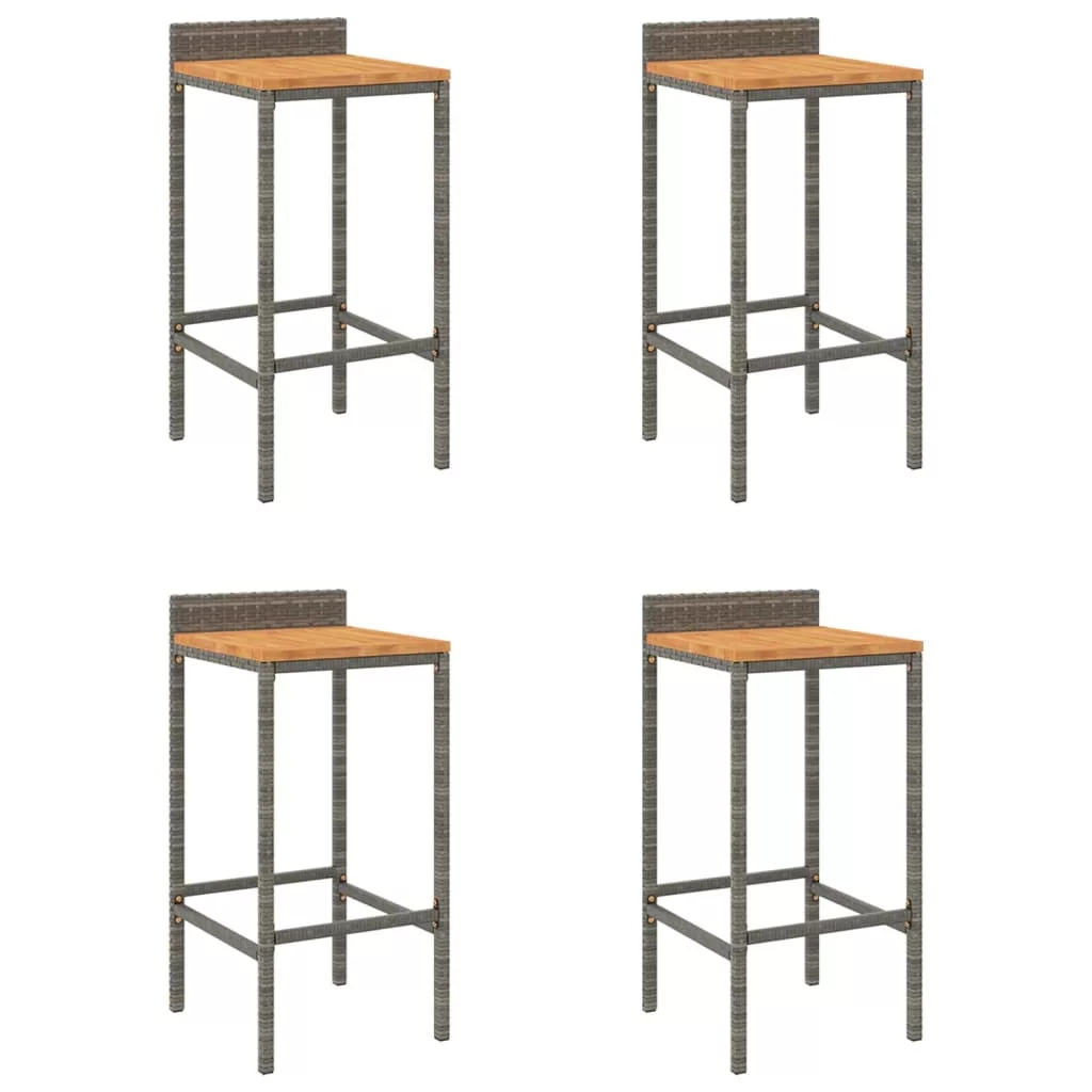 4 db szürke polyrattan és tömör akácfa bárszék