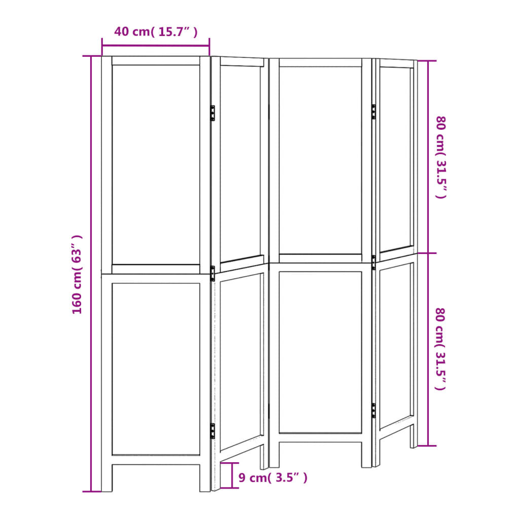4 paneles sötétbarna tömör császárfa térelválasztó