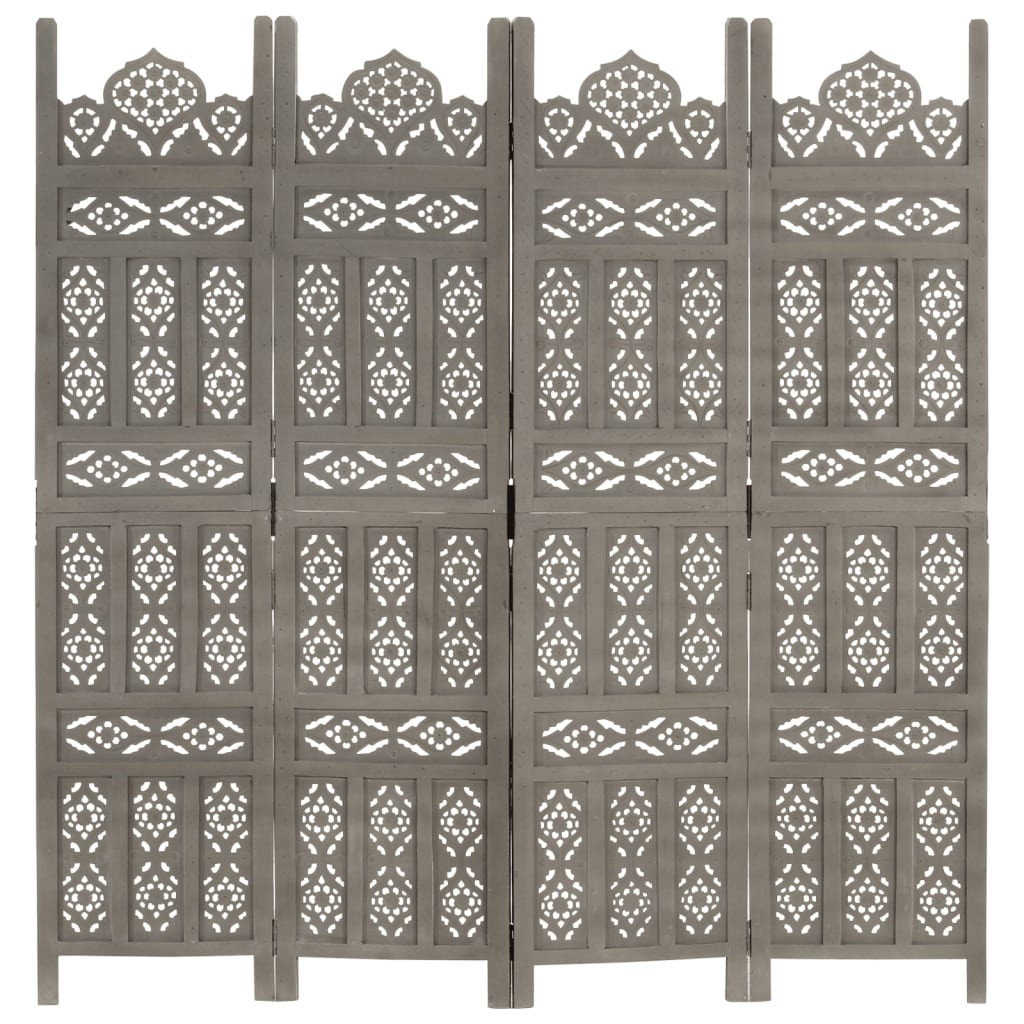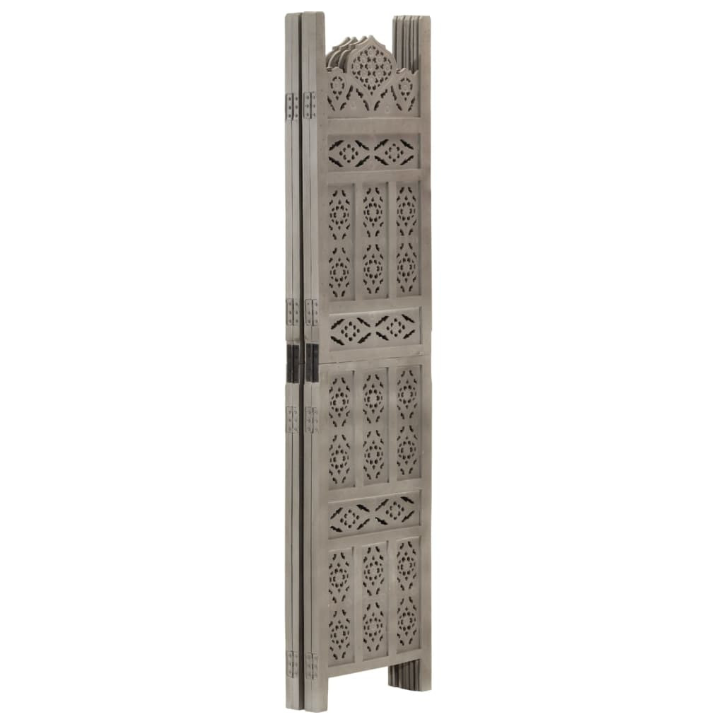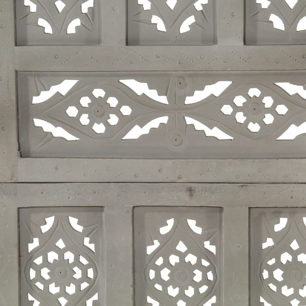 4-paneles szürke mangófa faragott térelválasztó 160 x 165 cm