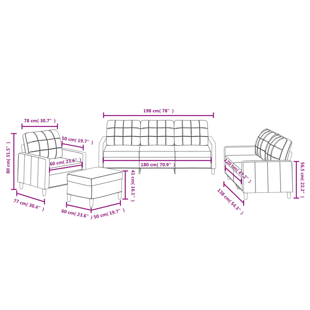 Ez az ülőgarnitúra kiváló hely a beszélgetéshez, olvasáshoz, tévézéshez vagy akár pihenéshez. Garantáltan otthona gyöngyszeme lesz. Tartós szövet: Az anyag egyszerű és letisztult megjelenésű, valamint légáteresztő és tartós.Erős és stabil váz: A kanapé ülőfelületének furnérlemez és fém váza biztosítja a szilárdságot és a stabilitást.Kényelmes ülésélmény: A kanapé rendkívül kényelmes a vastagon párnázott üléseknek, karfáknak és hátpárnáknak köszönhetően.Rugalmas lábtartó: A lábzsámolyon megpihentetheti lábait, amikor hátradől a kanapén, de további ülőhelyként is szolgálhat a szobában. Egyszerű kialakítása és kompakt mérete miatt szinte bármelyik helyiségbe ideális választás. Maksimális 110 kg ülésenként. Legyen tudatában a nyílt tűz és más erős hőforrások kockázatának a termék környezetében.