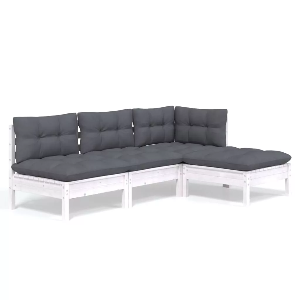 4 részes fehér fenyőfa kerti ülőgarnitúra párnákkal