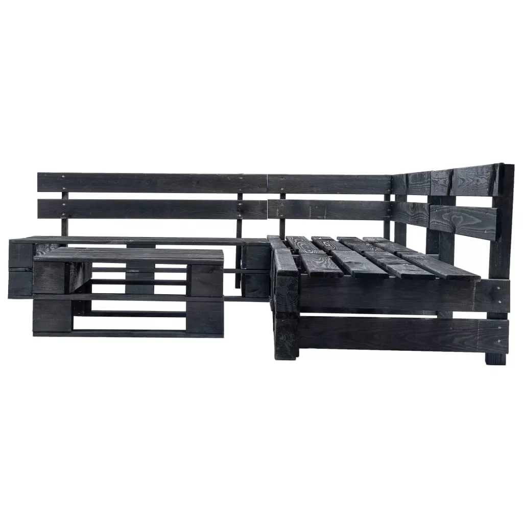 4 részes fekete fa kerti raklap-ülőgarnitúra