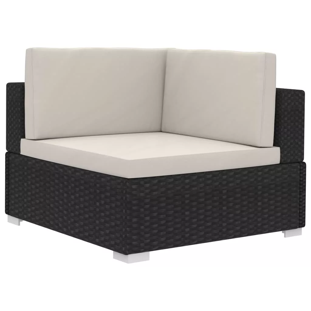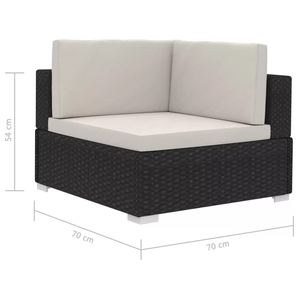 Ez a polyrattan ülőgarnitúra – amelybe 2 sarokkanapé, 2 középső kanapé, 6 hátpárna és 4 ülőpárna tartozik – kertjében vagy udvarán stílusos ülőhelyet biztosít. Az időjárásálló PE rattannak köszönhetően a kerti ülőgarnitúra könnyen tisztítható, strapabíró, és mindennapos kültéri használatra alkalmas. A porszórt felületű acélból készült váz biztosítja a garnitúra szilárdságát és stabilitását. Könnyű és moduláris, így egyszerűen kombinálható különféle variációkba. A garnitúra a rendkívül kényelmes, vastag ülő- és hátpárnákkal maximális üléskomfortot nyújt. Az egyszerűen gondozható poliészter huzat levehető és kimosható. A garnitúra összeszerelést igényel. Figyelem: Ahhoz, hogy a garnitúra minél tovább szolgálhassa Önt, eső, hó vagy fagy esetén, kérjük takarja le.