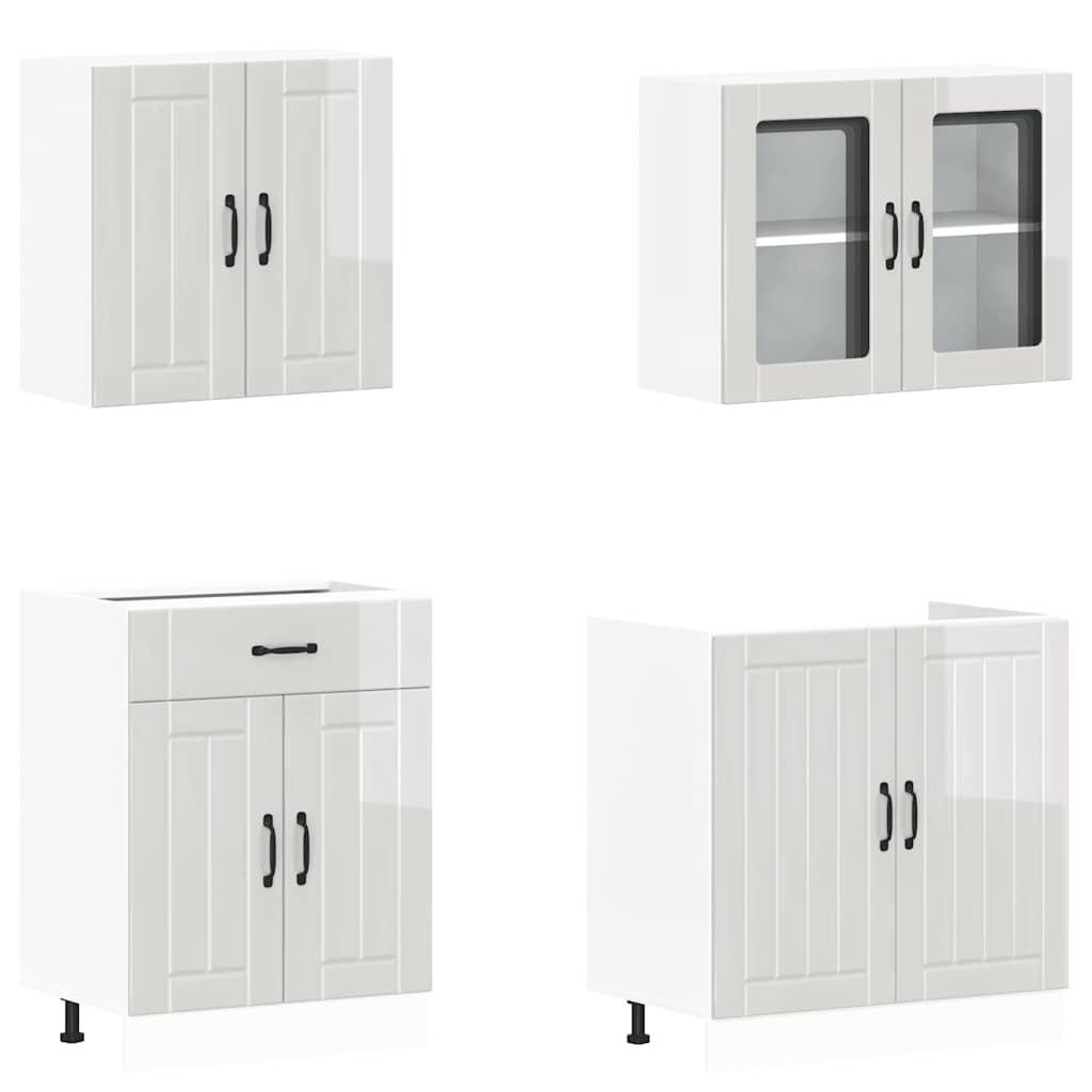 4 részes konyhai szekrény szett Lucca fényes fehér műfa