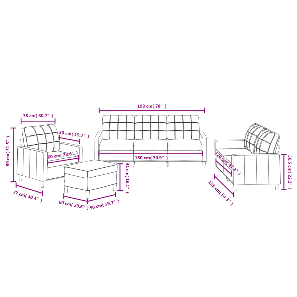 Ez az ülőgarnitúra kiváló hely a beszélgetéshez, olvasáshoz, tévézéshez vagy akár pihenéshez. Garantáltan otthona gyöngyszeme lesz. Tartós szövet: Az anyag egyszerű és letisztult megjelenésű, valamint légáteresztő és tartós.Erős és stabil váz: A kanapé ülőfelületének furnérlemez és fém váza biztosítja a szilárdságot és a stabilitást.Kényelmes ülésélmény: A kanapé rendkívül kényelmes a vastagon párnázott üléseknek, karfáknak és hátpárnáknak köszönhetően.Rugalmas lábtartó: A lábzsámolyon megpihentetheti lábait, amikor hátradől a kanapén, de további ülőhelyként is szolgálhat a szobában. Egyszerű kialakítása és kompakt mérete miatt szinte bármelyik helyiségbe ideális választás. Maksimális 110 kg ülésenként. Legyen tudatában a nyílt tűz és más erős hőforrások kockázatának a termék környezetében.