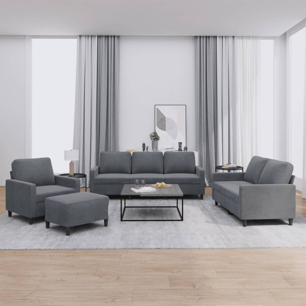 4 részes sötétszürke bársony ülőgarnitúra párnákkal