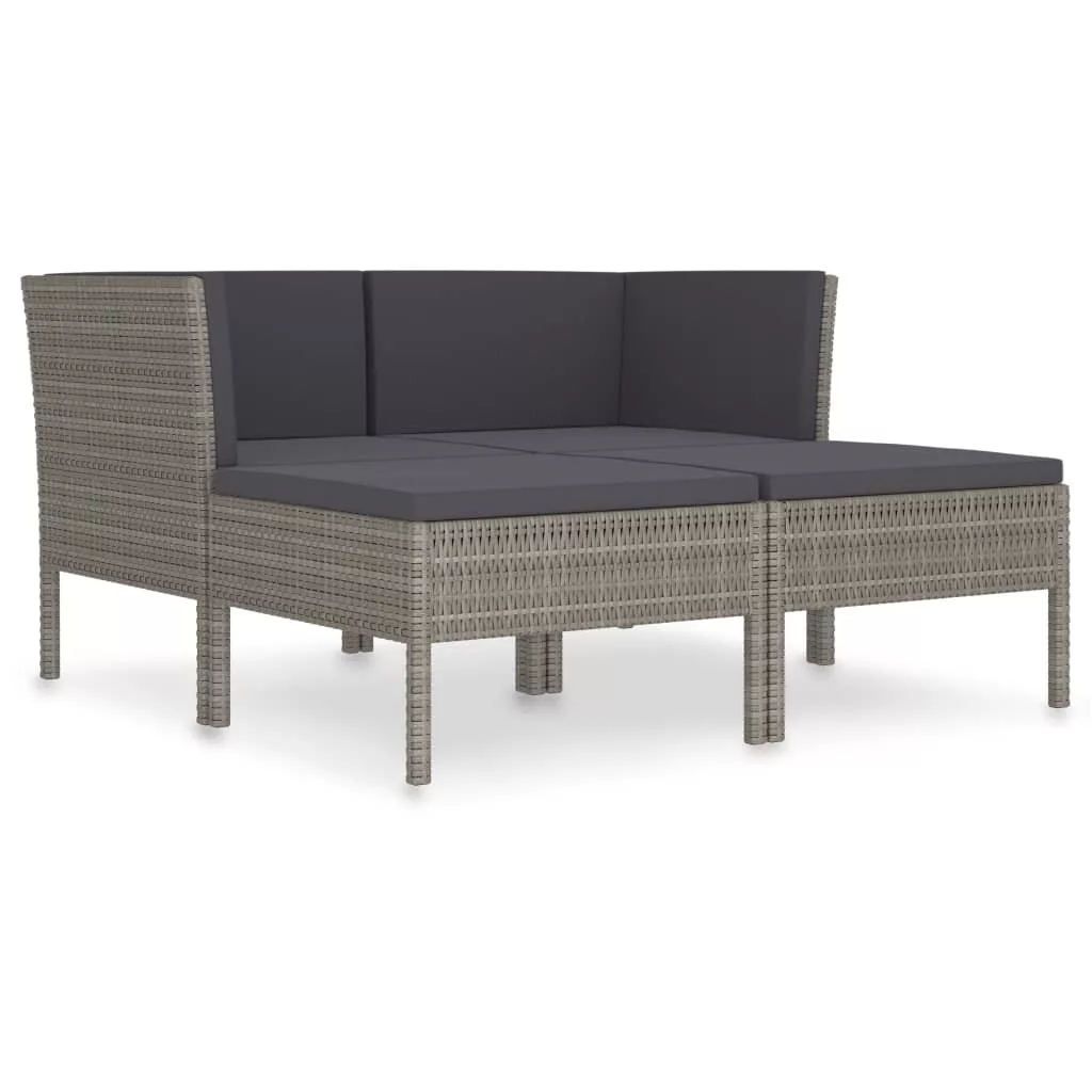4 részes szürke polyrattan kerti bútorszett párnákkal