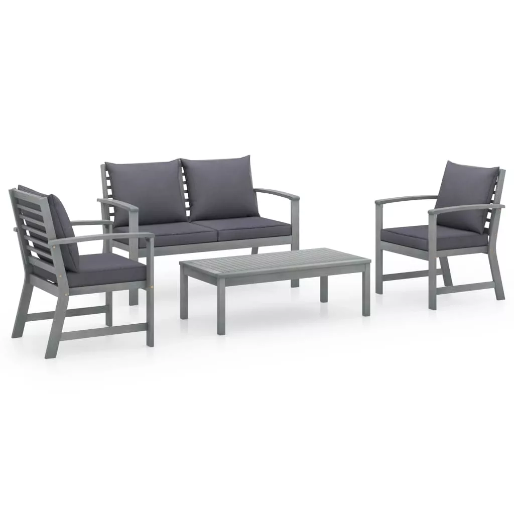 4 részes tömör akácfa kerti társalgó szett párnákkal