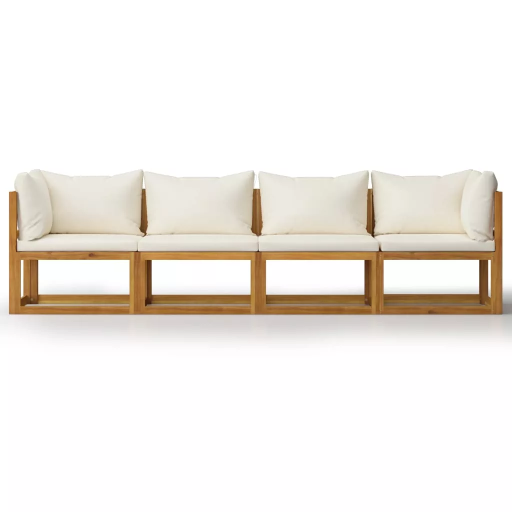 Ez a négyszemélyes kerti kanapé ideális választás pihenésre és kellemes időtöltésre családjával vagy barátaival. Az időtálló kialakításának köszönhetően a fakanapé rusztikus bájt kölcsönöz udvarának, erkélyének, kertjének vagy akár beltéri helyiségeinek is! A tömör akácfa vázzal ellátott kanapészett erős, stabil és tartós; olajos felületkezelésének köszönhetően a kanapészett alkalmas kültéri használatra. Az eltávolítható ülő- és hátpárnák vastag béléssel lettek ellátva, hogy rendkívüli kényelmet nyújthassanak. Emellett elemes kialakításával különleges kiegészítője lesz otthonának, amit tetszés szerint rendezhet el a helyiség igényeinek megfelelően. Maksimális 110 kg ülésenként. Legyen tudatában a nyílt tűz és más erős hőforrások kockázatának a termék környezetében.